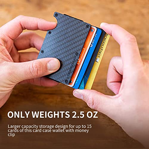 • ☑️【Slim & Ultra Light】: Minimalist wallets for men, thinner than traditional wallets, only weights 2.5 OZ and larger capacity storage design for up to 15 cards of this card case wallet with money clip, it can hold all your cards, clip money at the same time.