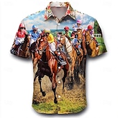 More information about Kentucky Derby Men's Horse Racing Shirt Button Up Shirt Short Sleeve Vintage Retro Vacation Holiday Festival Summer Spring Turndown 3D Print Funny Kentucky Derby Shirts Blue