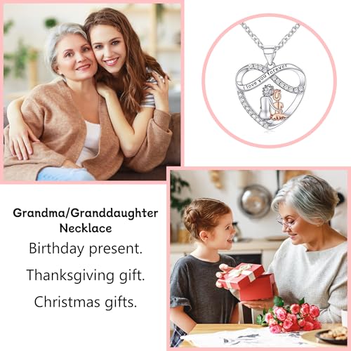 HOT ! LOVECOM S925 Sterling Silver Infinity Love Heart Necklaces for Women Grandma Granddaughter Cute I Love You Forever CZ Chain Pendant Necklace Christmas Birthday Jewelry Gifts for Mom Dad Daughter