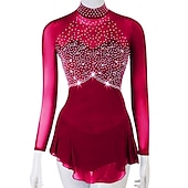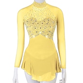 More information about Figure Skating Dress Women's Girls' Ice Skating Dress Outfits Yellow Dark Red Dark Navy Patchwork Mesh Spandex High Elasticity Practice Professional Competition Skating Wear Crystal / Rhinestone