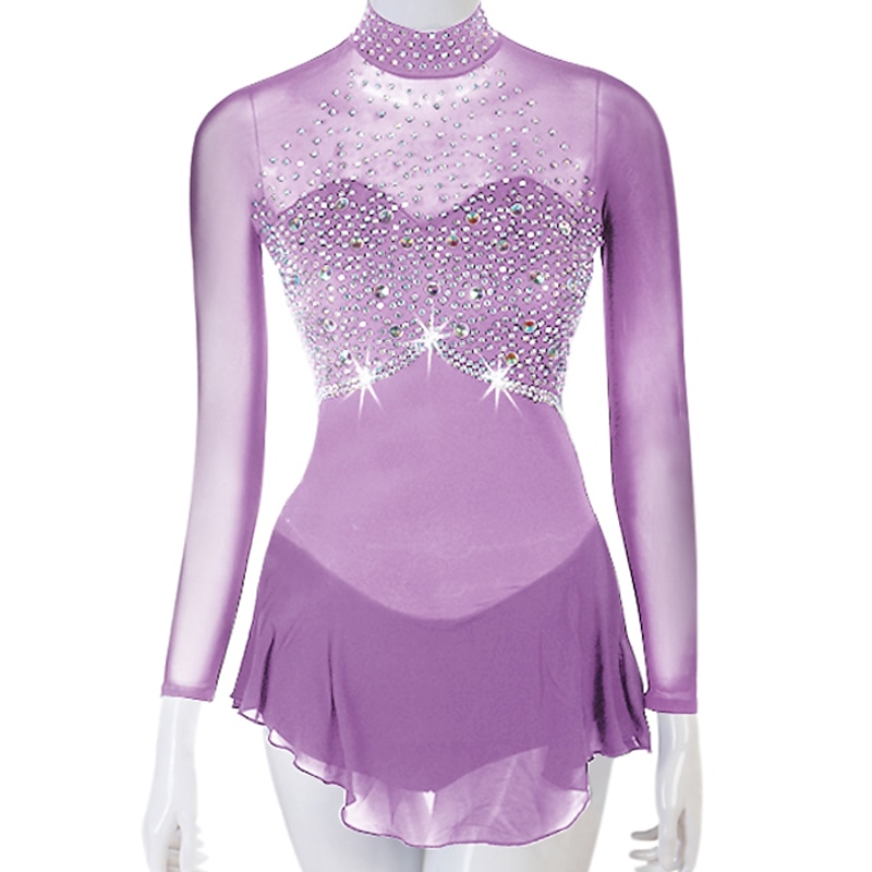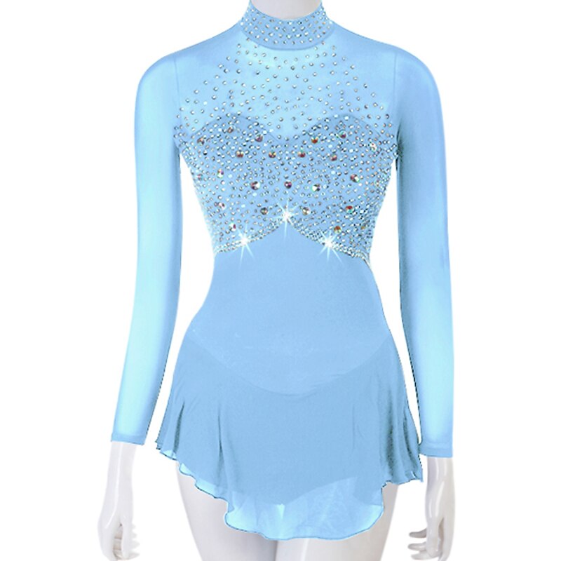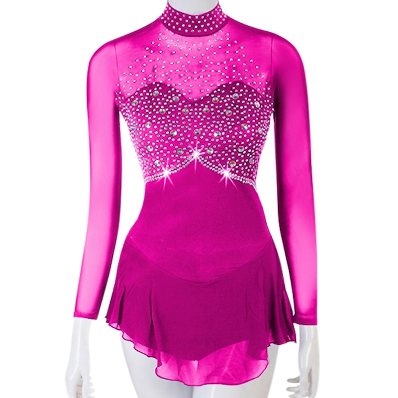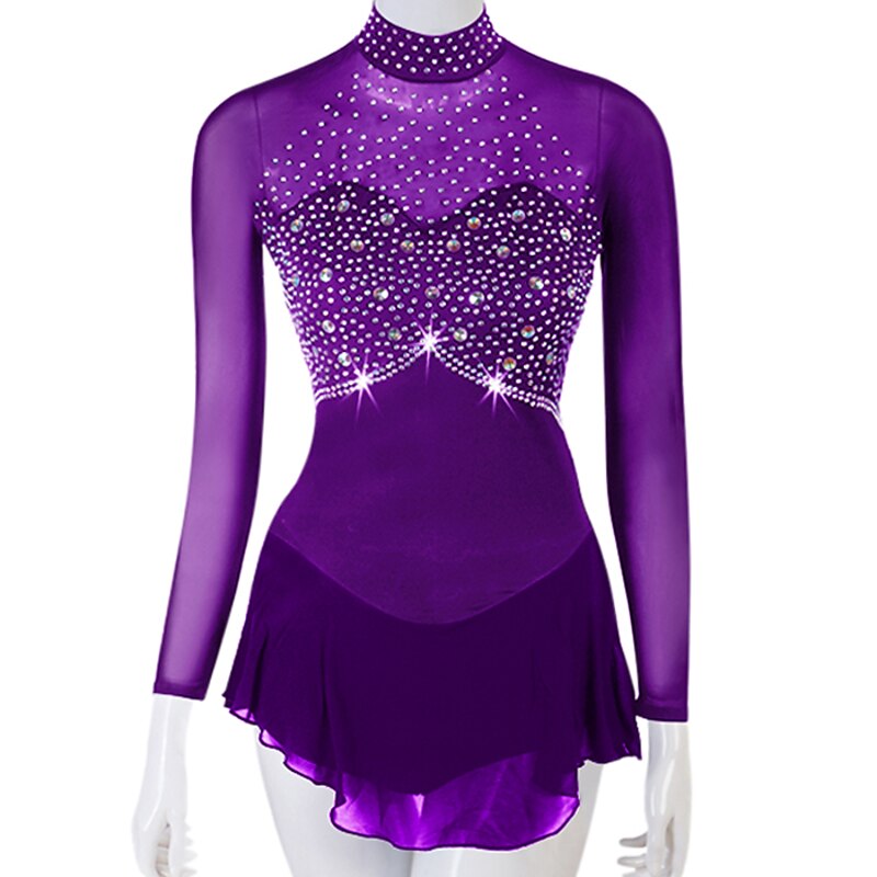 Figure Skating Dress Women's Girls' Ice Skating Dress Outfits Yellow Dark Red Dark Navy Patchwork Mesh Spandex High Elasticity Practice Professional Competition Skating Wear Crystal / Rhinestone 19