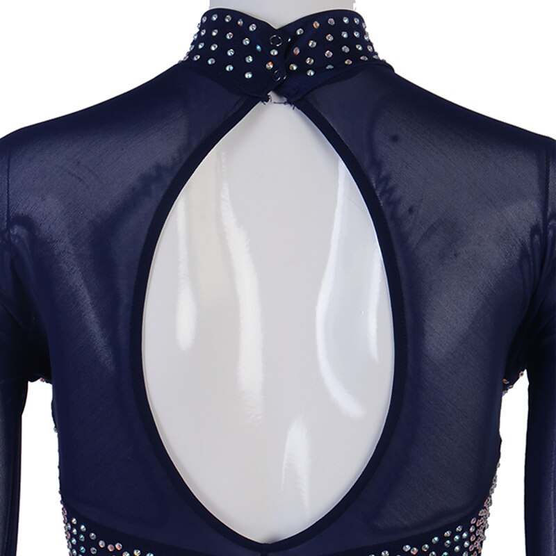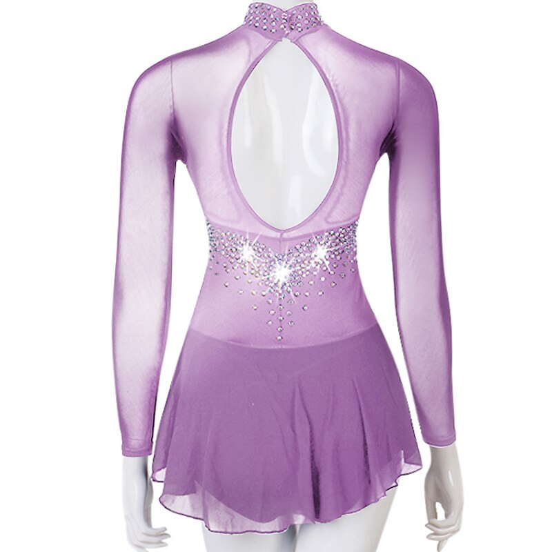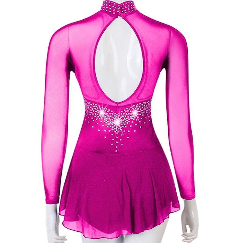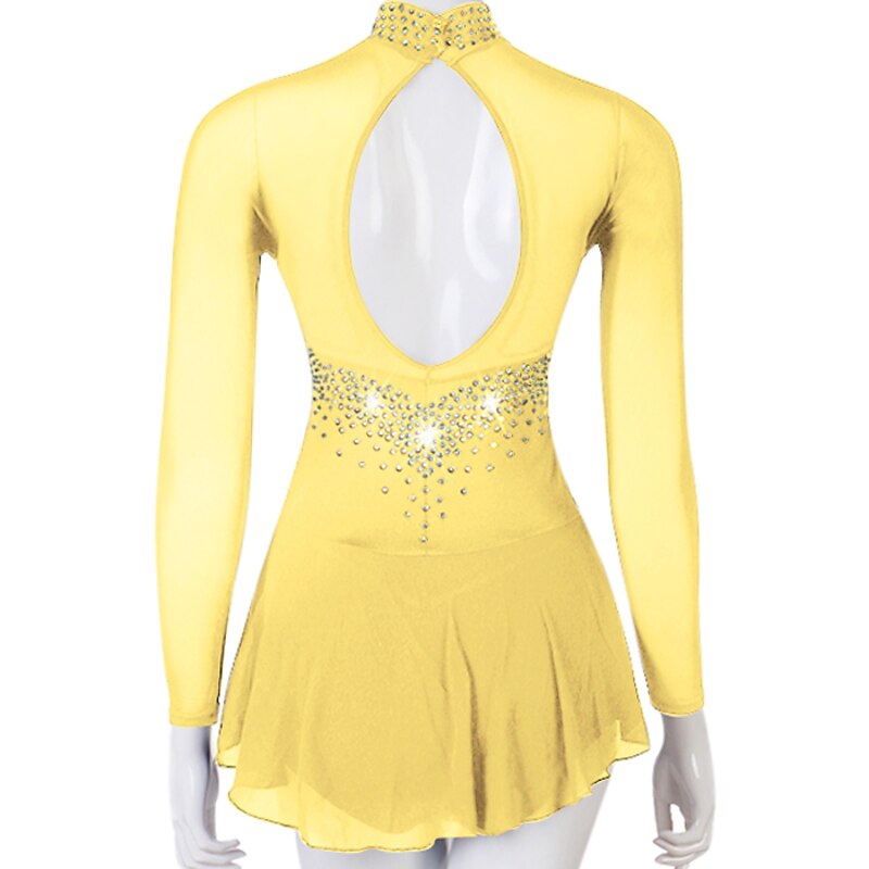Figure Skating Dress Women's Girls' Ice Skating Dress Outfits Yellow Dark Red Dark Navy Patchwork Mesh Spandex High Elasticity Practice Professional Competition Skating Wear Crystal / Rhinestone 13
