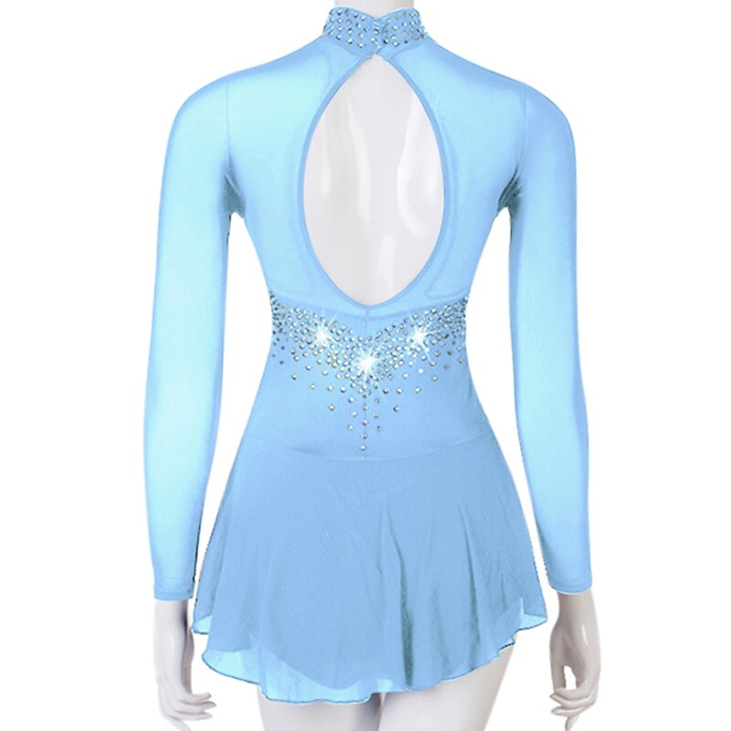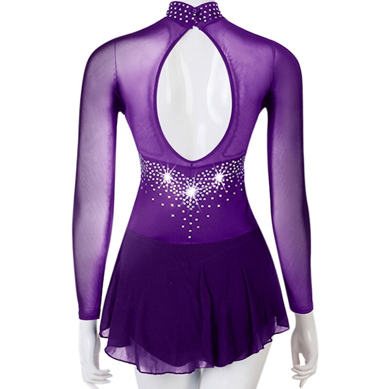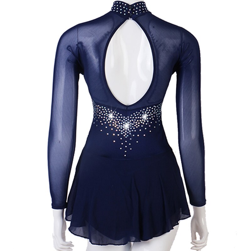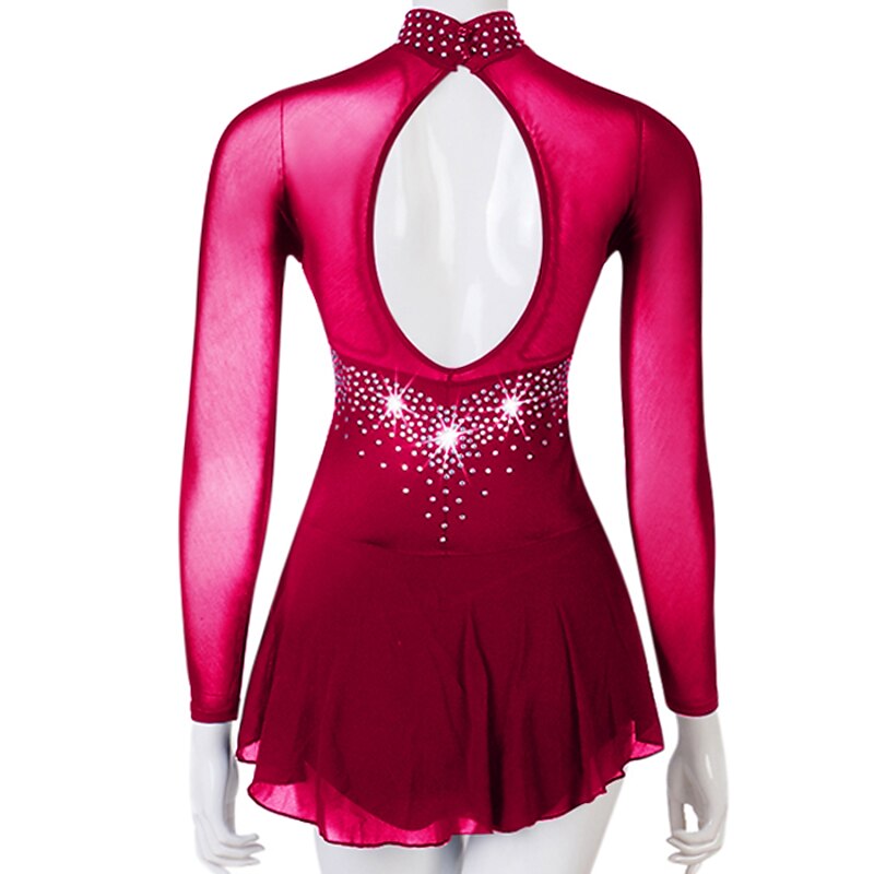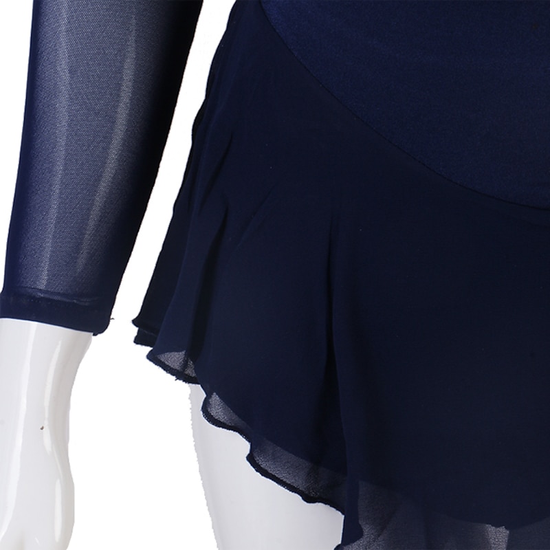 Figure Skating Dress Women's Girls' Ice Skating Dress Outfits Yellow Dark Red Dark Navy Patchwork Mesh Spandex High Elasticity Practice Professional Competition Skating Wear Crystal / Rhinestone 11