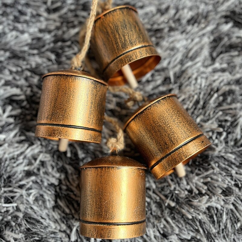 Vintage Cast Iron Christmas Bells Handcrafted Hanging Wind Chimes  Large Hanging Door & Window Decorations with Golden Finish, Rustic Holiday Ornaments for Christmas, Festive Home & Office Decor 25
