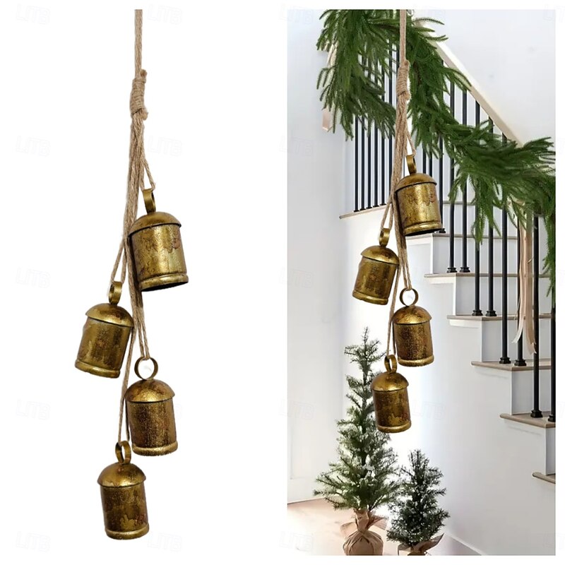 $29.99 - Vintage Cast Iron Christmas Bells Handcrafted Hanging Wind Chimes Large Hanging Door & Window Decorations with Golden Finish, Rustic Holiday Ornaments for Christmas, Festive Home & Office Decor 2025. Shop for cheap Ornaments online? Buy at lightinthebox.com on sale today!