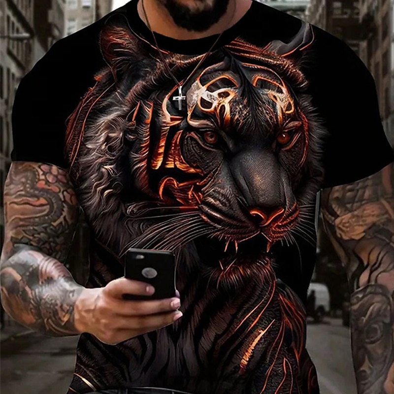 More information about Men's Graphic Animal Tiger T Shirt Short Sleeve T shirt 3D Print Crew Neck Shirt Daily Designer Retro Vintage Sports Outdoor Holiday Going out Yellow Blue Orange Spring & Summer Clothing Apparel S M