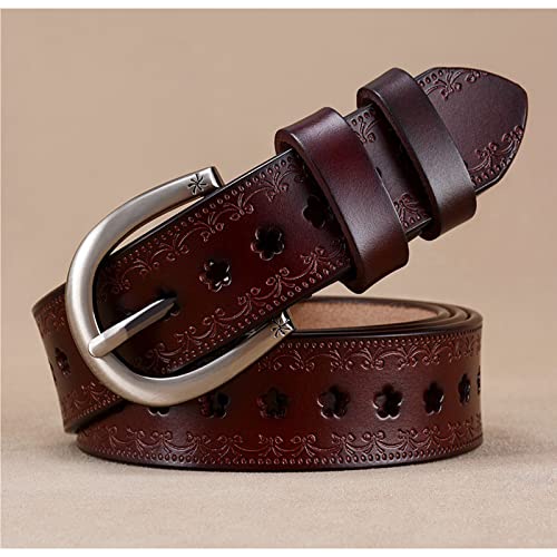 Leather Belt Women,Women's Hollow Flower Leather Belt for Jeans Pants Wide Belt for Ladies,Brown,110cm/43.3'' 3