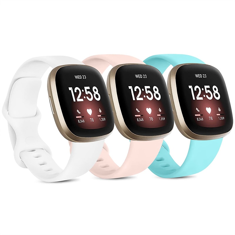 4 Pack 3 Pack Smart Watch Band Compatible with Fitbit Versa 4 Sense 2 Versa 3 Sense Soft Silicone Smartwatch Strap Adjustable Women Men Sport Band Replacement  Wristband 3