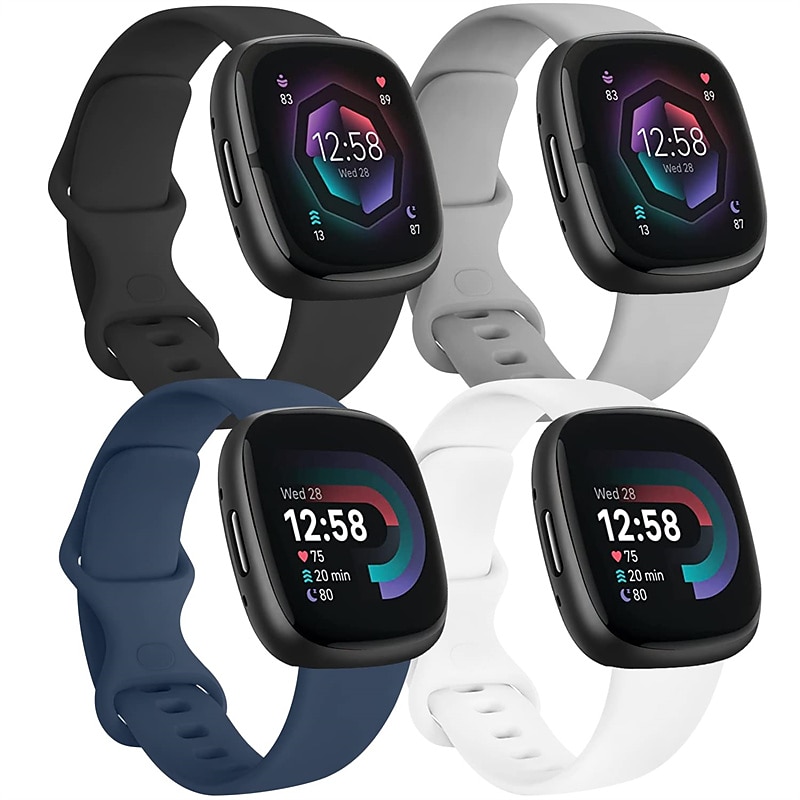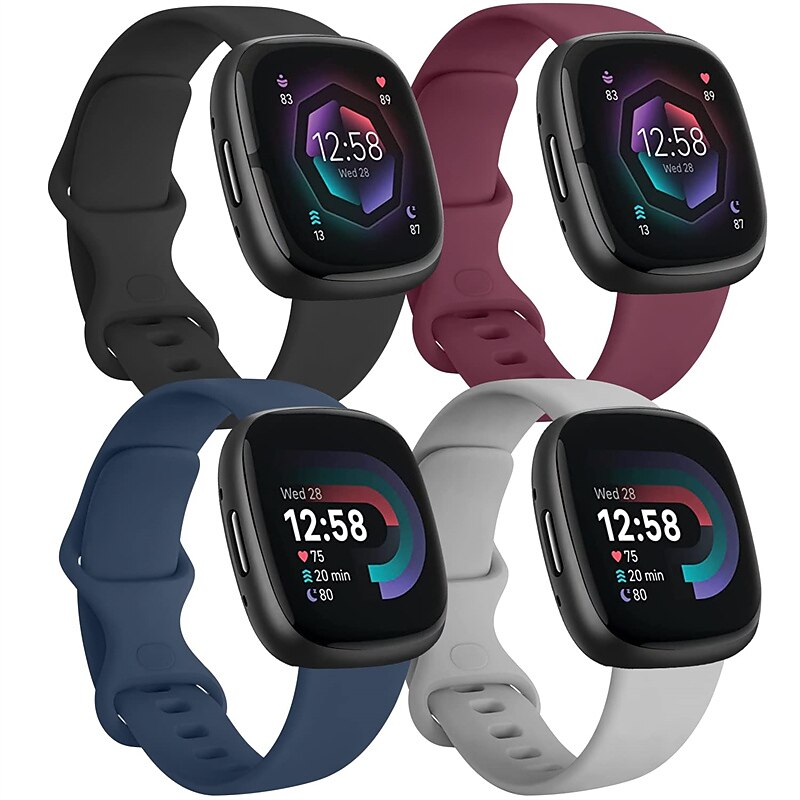 4 Pack 3 Pack Smart Watch Band Compatible with Fitbit Versa 4 Sense 2 Versa 3 Sense Soft Silicone Smartwatch Strap Adjustable Women Men Sport Band Replacement  Wristband 11