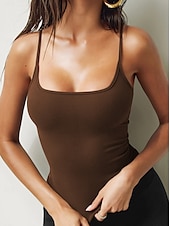 More information about Women's Camisole Tank Top Plain Stylish Sexy Sleeveless Sleeveless Strap Regular Tops Daily Black White Red Light Brown Dark Gray Summer