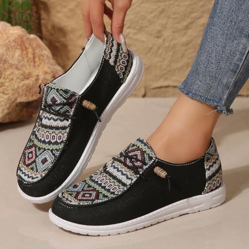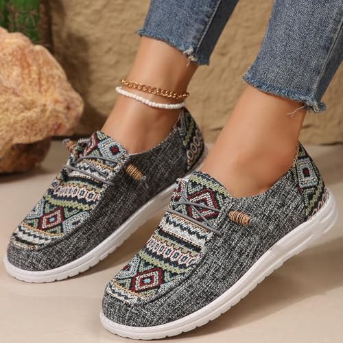 Women's Summer Fashionable Ethnic Pattern Lace Up Front Canvas Shoes, Work Flat Sneakers, Casual Comfortable Low Top Outdoor for Daily Wear, Loafers, Trending Walking Shoes, Trainers 1