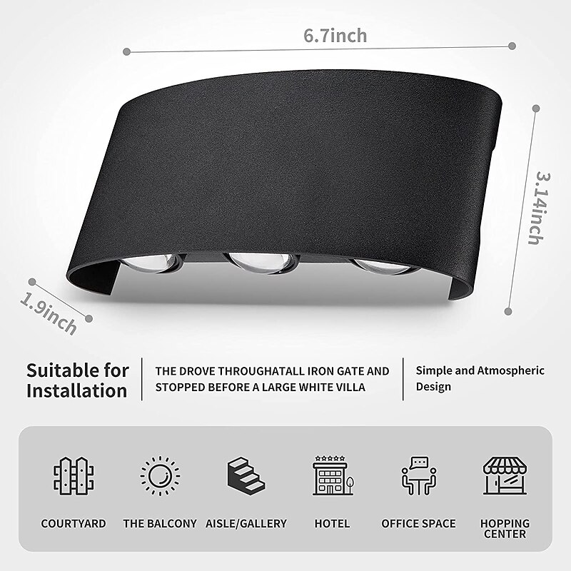 Led Outdoor/Indoor Wall Lamp 6W Up/Down Lighting Indoor Double-Head Curved Waterproof IP65 Wall Lamp Modern Bedroom Lamp Warm White Light AC85-265V 4