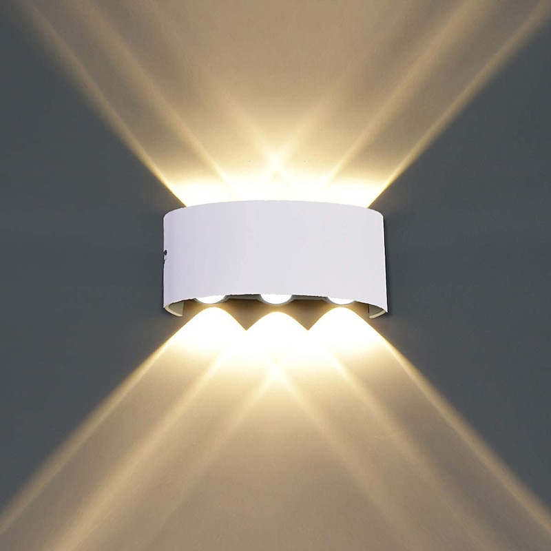Led Outdoor/Indoor Wall Lamp 6W Up/Down Lighting Indoor Double-Head Curved Waterproof IP65 Wall Lamp Modern Bedroom Lamp Warm White Light AC85-265V 8