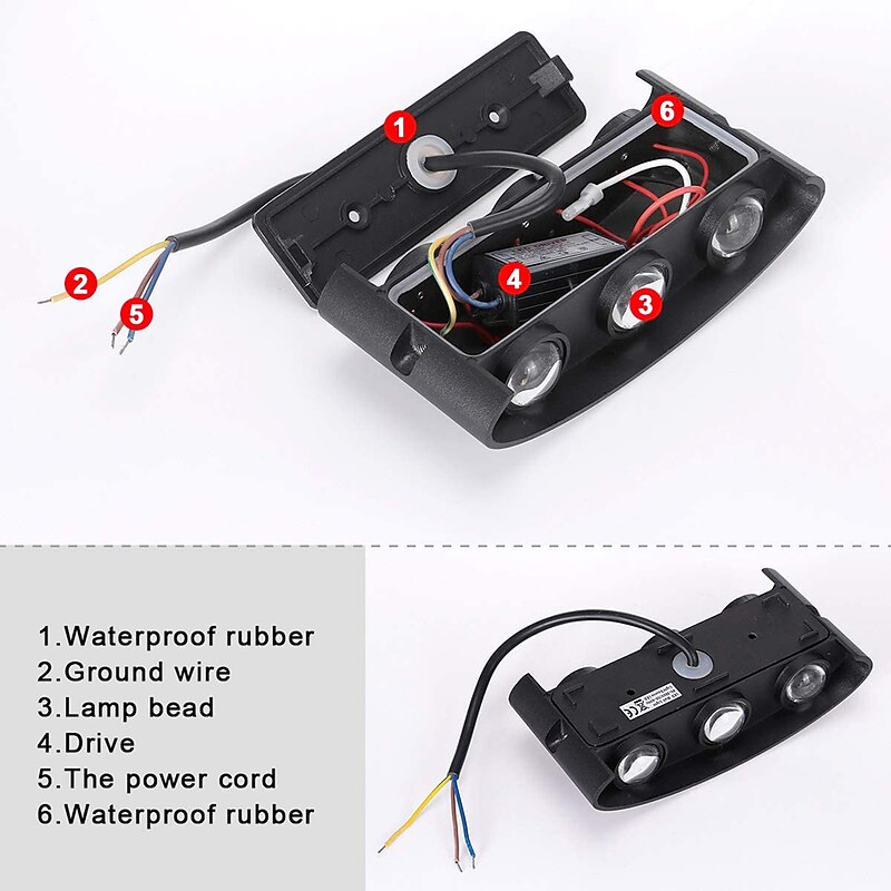 Led Outdoor/Indoor Wall Lamp 6W Up/Down Lighting Indoor Double-Head Curved Waterproof IP65 Wall Lamp Modern Bedroom Lamp Warm White Light AC85-265V 3