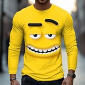 More information about Men's Human face Funny Emotes T Shirt Long Sleeve T shirt 3D Print Crew Neck Shirt Fashion Exaggerated Street Daily Yellow Red Blue Summer Spring Fall Clothing Apparel S M L XL XXL XXXL