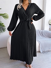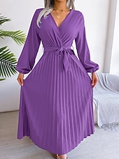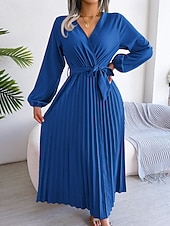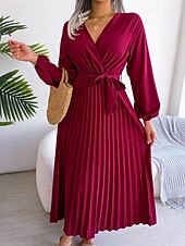 More information about Women's Midi Dress Party Dress Cocktail Dress Satin Dress Fashion Modern Party Birthday Evening Party Regular Fit Plain Long Sleeve V Neck Black Red Royal Blue Purple Fall Winter