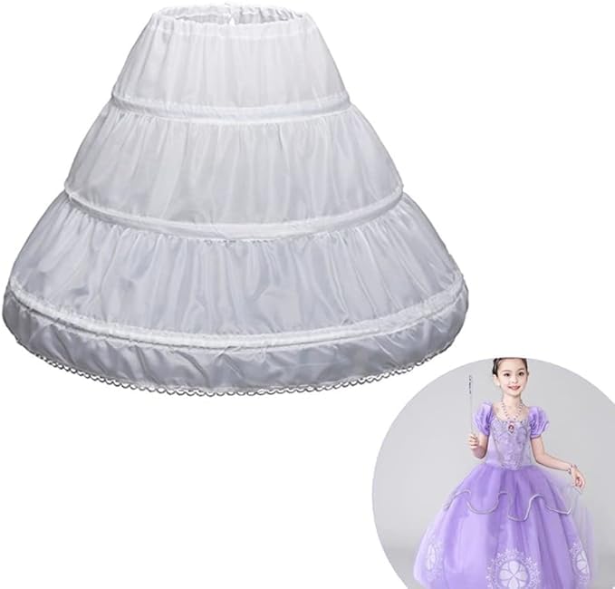 More information about Adjustable Waist Lining Girls' 3 Hoops Lace Petticoat Full Slip Flower Girl Crinoline Skirt Children Princess Skirt