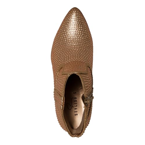 STYLISH S BLING ~ Womens Sparkly Rhinestone Western Cowgirl Ankle Boots Low Stacked Heel Pointed Toe with Side Zipper 5
