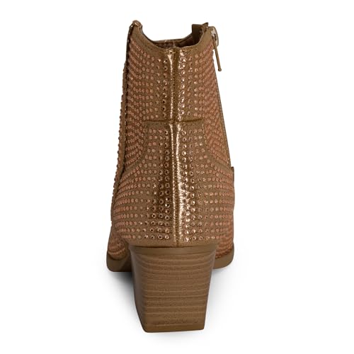 STYLISH S BLING ~ Womens Sparkly Rhinestone Western Cowgirl Ankle Boots Low Stacked Heel Pointed Toe with Side Zipper 4