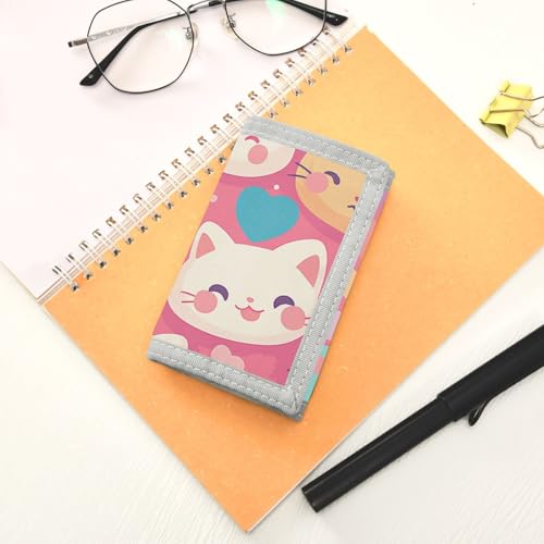Boys Trifold Outdoor Sports Wallet for Kids Wallets Credit ID Card Slim Small Coin Purses Cut Cats Faces 7