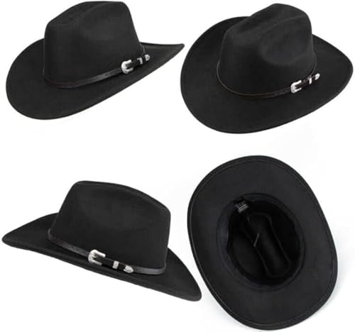 HOT ! Western Cowboy Hat for Men Women Classic Roll Up Fedora Hat with Buckle Belt(Size:S-M)