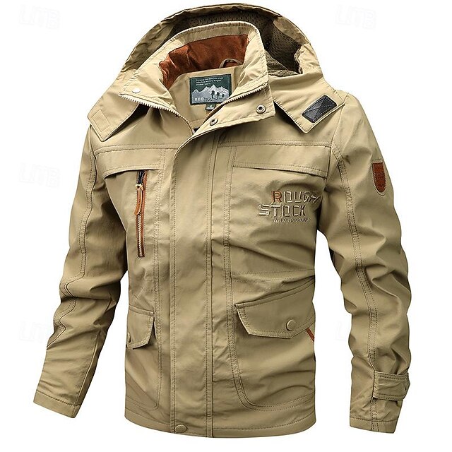 More information about Men's Outdoor Jacket Cargo Jacket Hoodie Jacket Tactical Jacket Outdoor Daily Removable Soft Multiple Pockets Spring & Fall Plain Casual Comfortable Hooded Regular Black Khaki Army Green Jacket