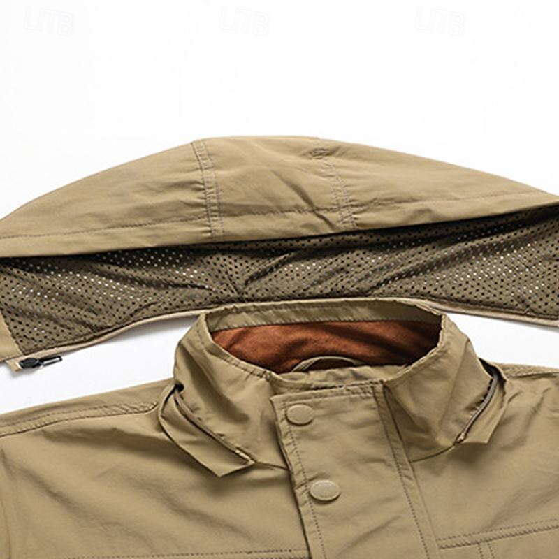Men's Outdoor Jacket Cargo Jacket Hoodie Jacket Tactical Jacket Outdoor Daily Removable Soft Multiple Pockets Spring &  Fall Plain Casual Comfortable Hooded Regular Black Khaki Army Green Jacket 11