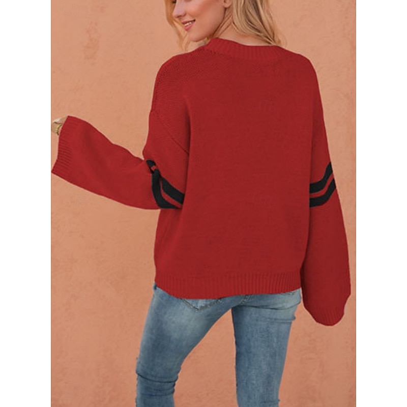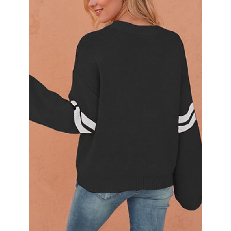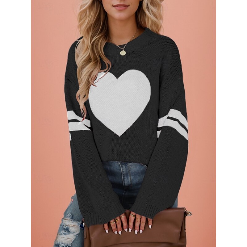 HOT ! Women's Valentine Sweater Casual Soft Heart Ribbed Crew Neck Knitted Long Sleeve Regular Tops Knit Outdoor Daily Valentine Black White Fall Winter