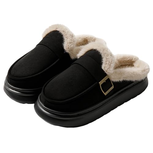 HOT ! Women's Fuzzy Platform Slippers with Adjustable Buckle, Non-Slip Sole Cozy Comfy Warm Faux Fleece Lined Winter Shoes Indoor Outdoor Slip On Memory Foam Fuzzy House Slippers Plush Slides