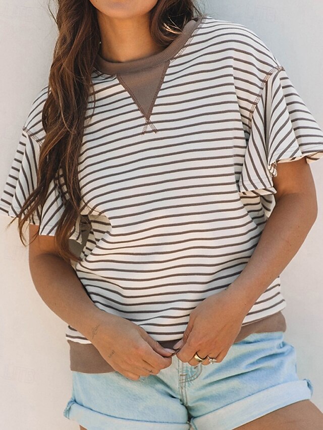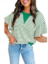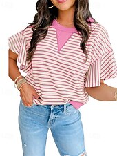 More information about Women's T Shirt Striped Fashion Modern Short Sleeve Crew Neck Regular Tops Daily Patchwork Pink Brown Green Summer