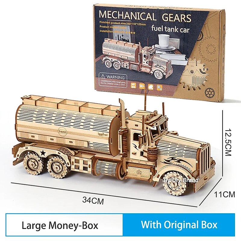 DIY 3D Wooden Puzzles Money Box Piggy Bank Fuel Truck Model Building Block Kits Assembly Jigsaw Toy Gift for Children Adult 10