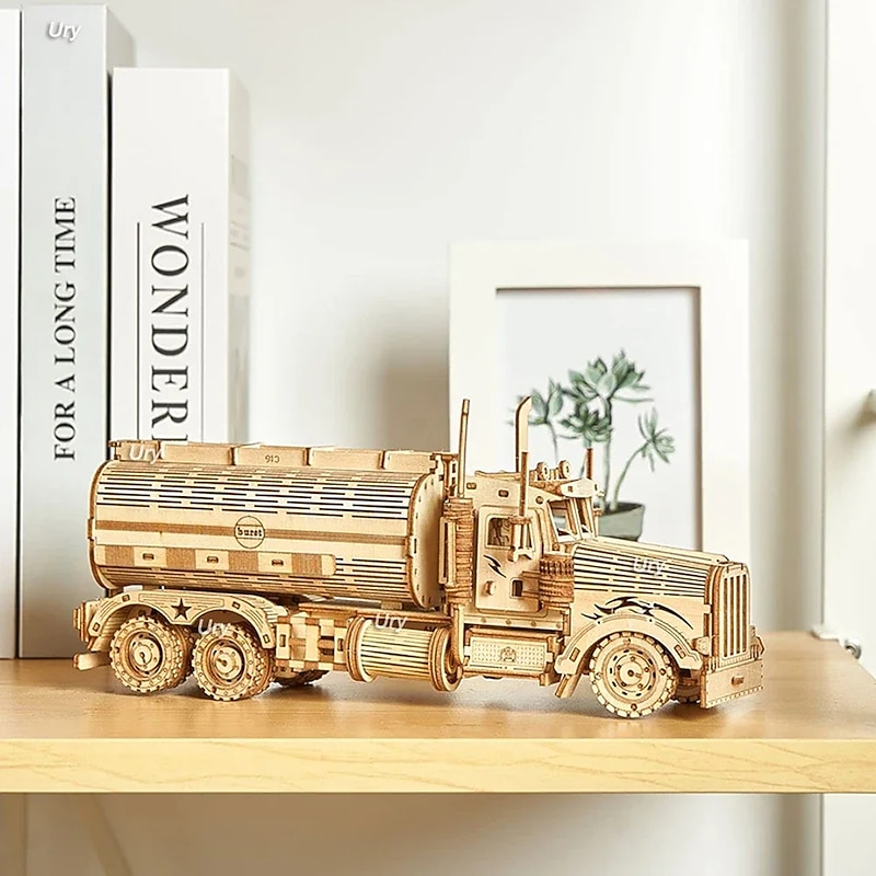 DIY 3D Wooden Puzzles Money Box Piggy Bank Fuel Truck Model Building Block Kits Assembly Jigsaw Toy Gift for Children Adult 9