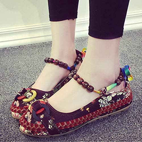 More information about Women's Beading Round Toe Embroidered Shoes Lace Up Colorful Casual Flats Shoes