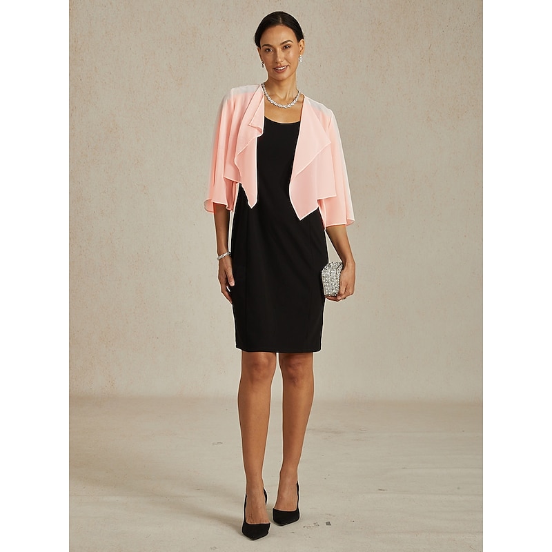 Women's Flowy Tops Chiffon Tops Solid Color Elegant 3/4 Length Sleeve Asymmetrical Crop Tops Wedding Guest Blush Pink Summer Spring Fall 12