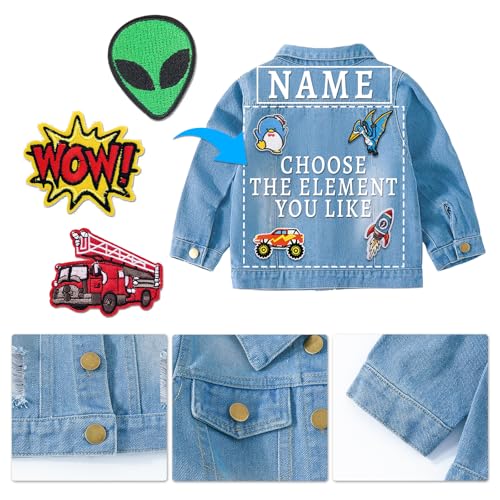 • 【Personalized denim jacket】Our personalized denim jacket has a variety of cute patterns to choose from, two colors of light blue and dark blue, suitable for 1-14 years old and multiple sizes, to create a unique children's denim jacket. Let every child have his or her own style and characteristics, and enhance self-confidence.