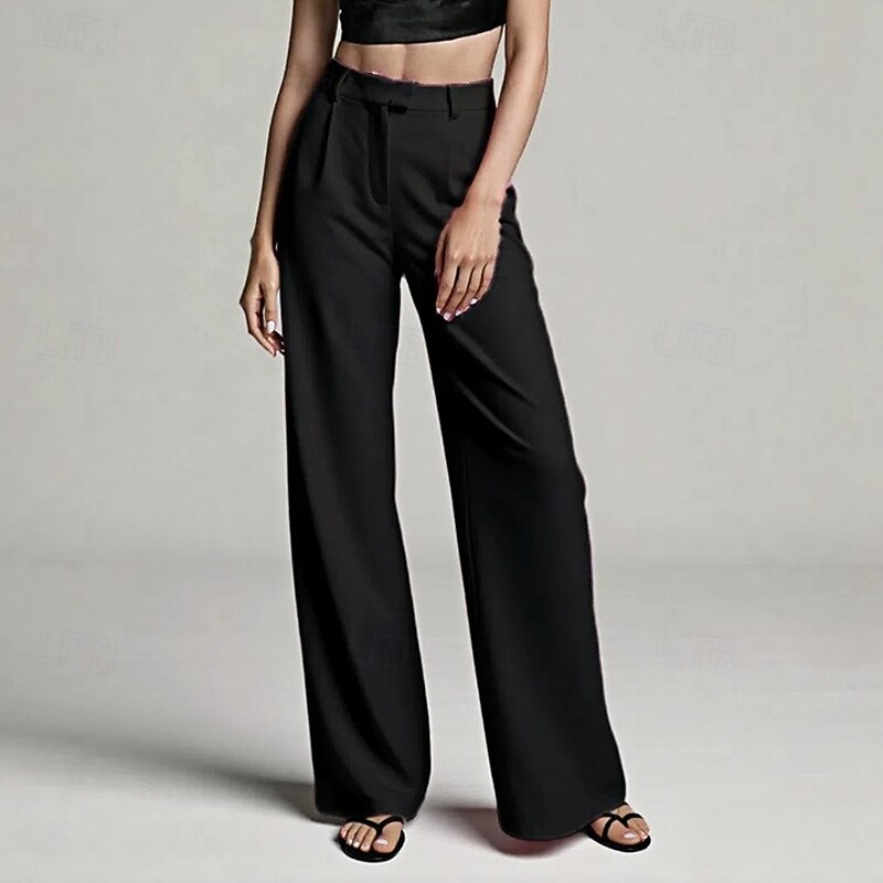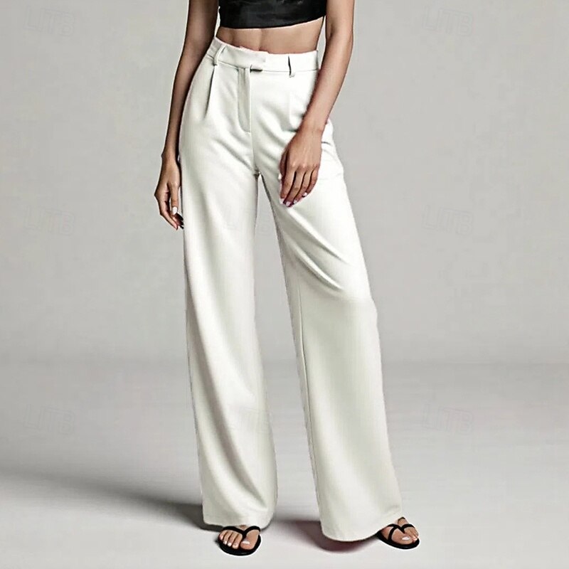 More information about Women's Dress Pants Wide Leg Pants Trousers Fashion Streetwear Full Length High Waist Plain Breathability Comfortable Street Daily Wear Going out Black White Yellow Pink Spring Fall Regular Fit