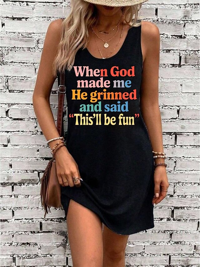 HOT ! Women's GOD Mini Dress Summer Dress Casual Beach Daily Loose Fit Graphic Letter Sleeveless U Neck Black Gray Summer