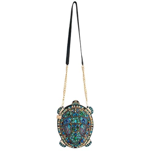 HOT ! Mary Frances Wave Rider Beaded Crossbody Handbag Clutch Novelty Evening Purse Turtle Design with Removable Chain Strap, Multicolor
