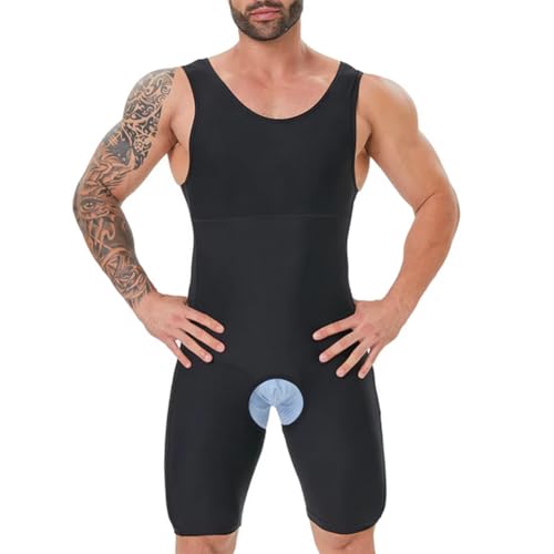 • One-piece full body shapewear: designed to sculpt your body from the chest down to the mid-thighs. It effectively smooths out waist fat rolls and enhances the natural curves of your hips. The unique four corner style of this mens bodysuit works to slim down the thighs, and widen the legs hem design ensuring that it stays in place without any rolling or flipping. The open crotch feature allows for easy bathroom breaks without any hassle of removing this compression bodysuit.