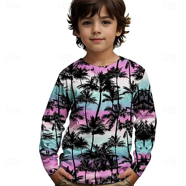 HOT ! Boys' 3D Graphic Coconut Tree T shirt Tee Long Sleeve Spring Fall Fashion Basic Kids 4-12 Years Crew Neck Outdoor Casual Daily Regular Fit