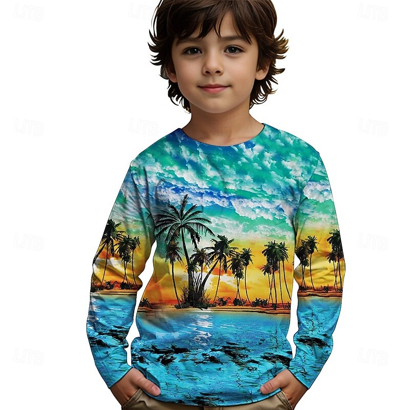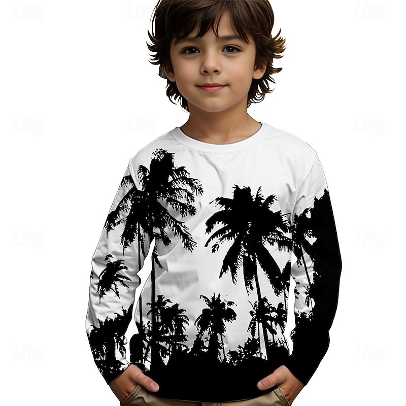 More information about Boys' 3D Graphic Coconut Tree T shirt Tee Long Sleeve Spring Fall Fashion Basic Kids 4-12 Years Crew Neck Outdoor Casual Daily Regular Fit