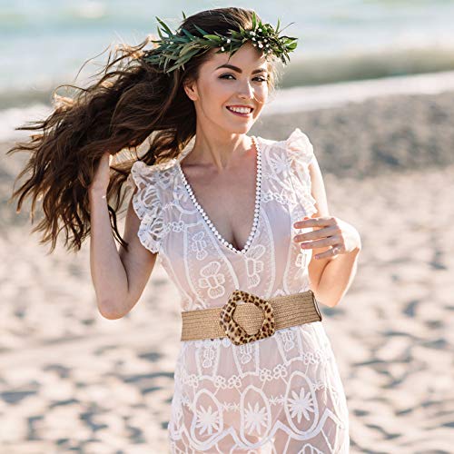 • Various styles: you will receive 4 pieces of straw woven elastic waist belts in 4 different styles of buckle, including classic woven buckles, vintage wood buckles, stylish leopard print buckle, sufficient quantity can meet your daily wearing and decorative needs, they are suitable for both women to wear, and all seasons to wear