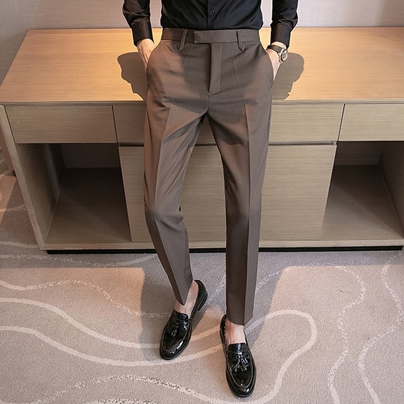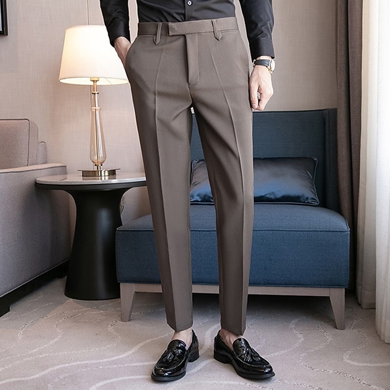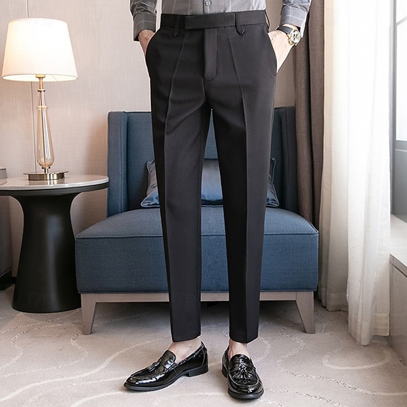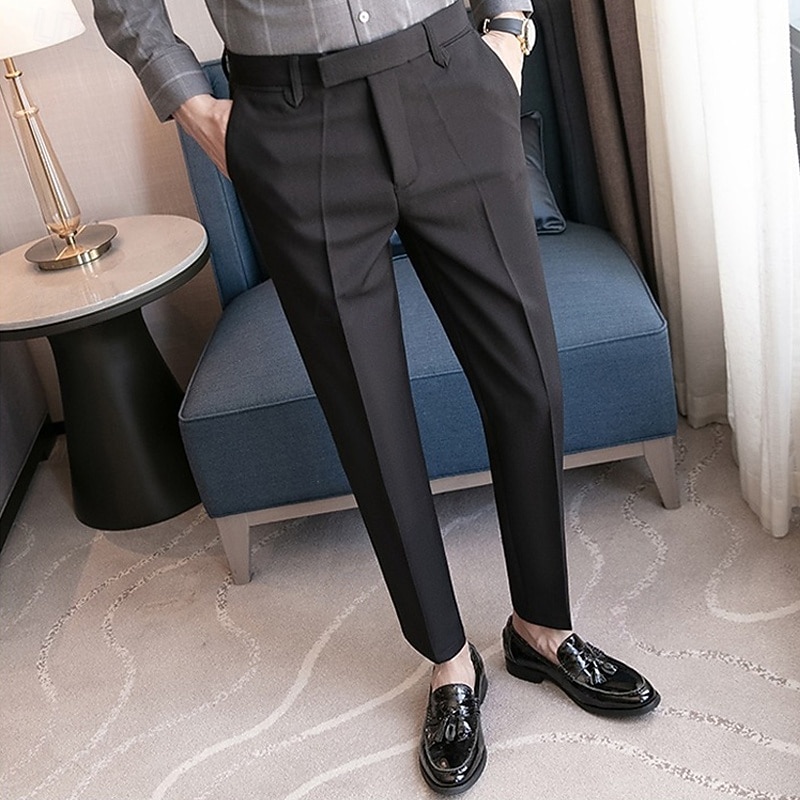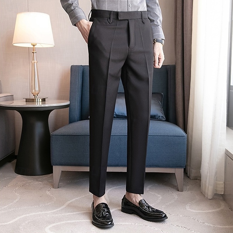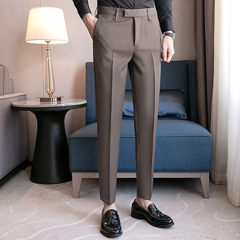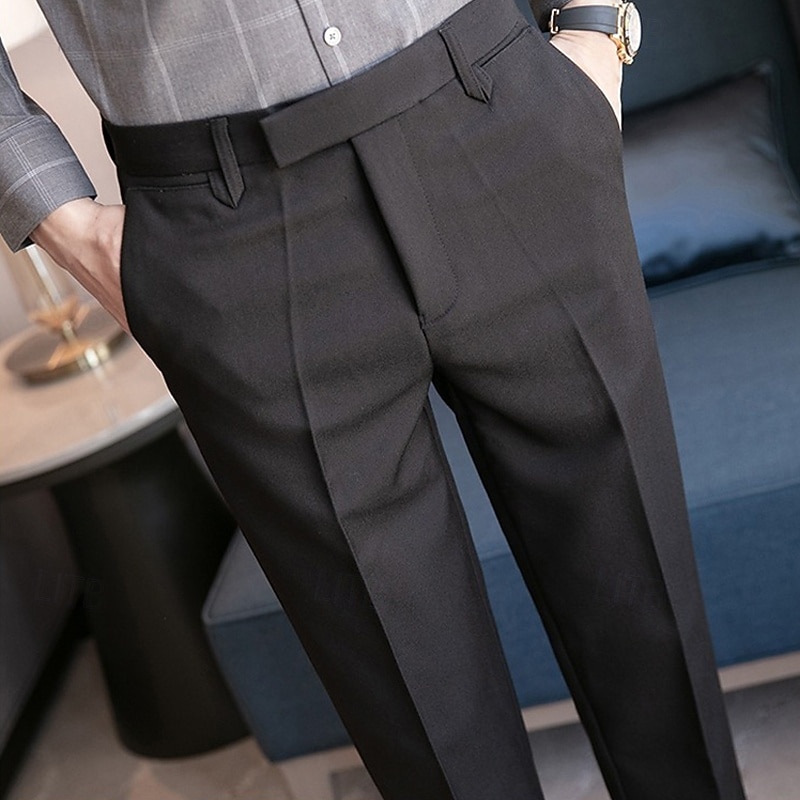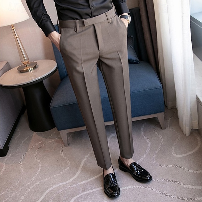 HOT ! Men's Graduation Dress Pants Trousers Chinos Buttons Pocket Solid Color Comfort Formal Party Work Fashion Classic Style Black Coffee Micro-elastic