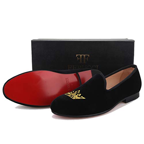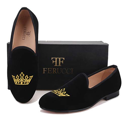 More information about FERUCCI Men Plain Black Velvet Slippers Loafers with Gold Crown Wedding Prom