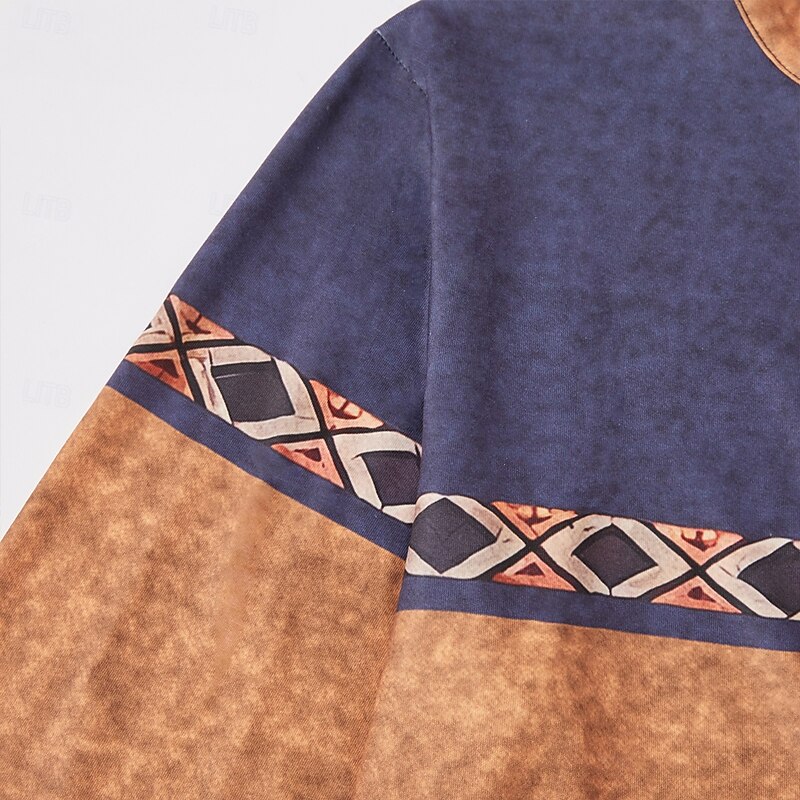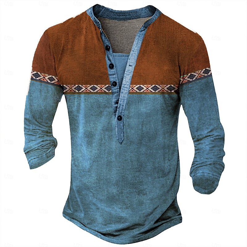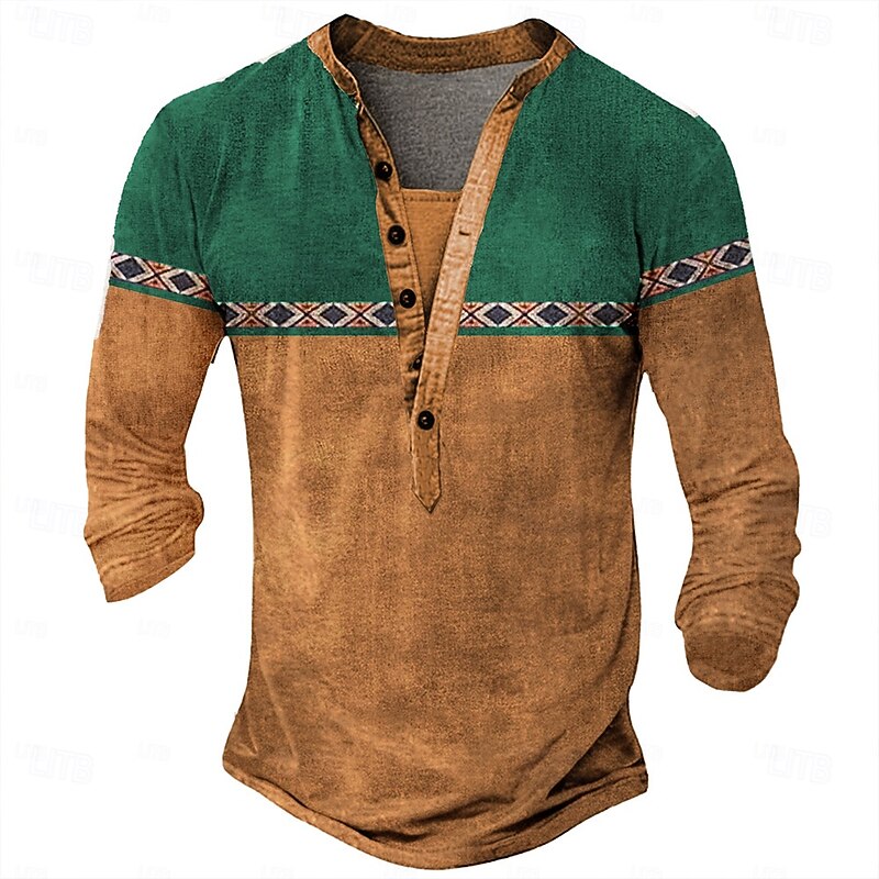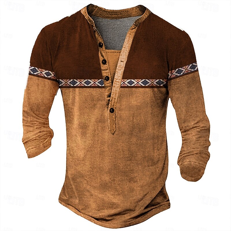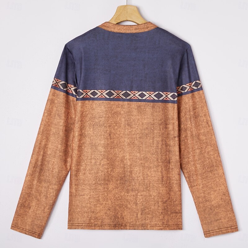 More information about Men's Tribal T Shirt Henley Shirt Long Sleeve 3D Print Designer Retro Vintage Street Casual Daily Summer Spring Fall Dark Brown Black Blue Brown Green Henley Henley T-Shirt