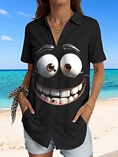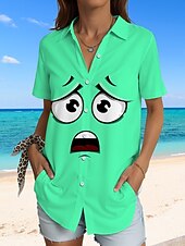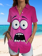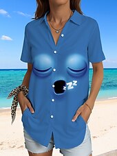 More information about Women's Shirt Long Sleeve Button Down Blouse Graphic 3D Vintage Tropical Daily Short Sleeve Shirt Collar Regular Tops Daily Black Blue Green Rose Pink Summer Spring
