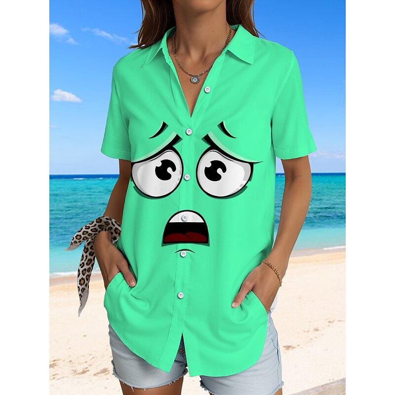 HOT ! Women's Shirt Long Sleeve Button Down Blouse Graphic 3D Vintage Tropical Daily Short Sleeve Shirt Collar Regular Tops Daily Black Blue Green Rose Pink Summer Spring