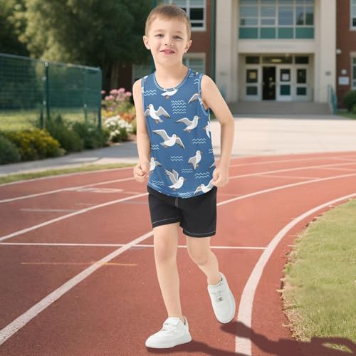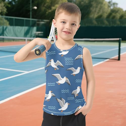 J JOYSAY Seagull Wave Blue Boys Tank Top Sleeveless Muscle Shirts Quick Dry Workout Active Sport Kids T-Shirts 3-15T 3