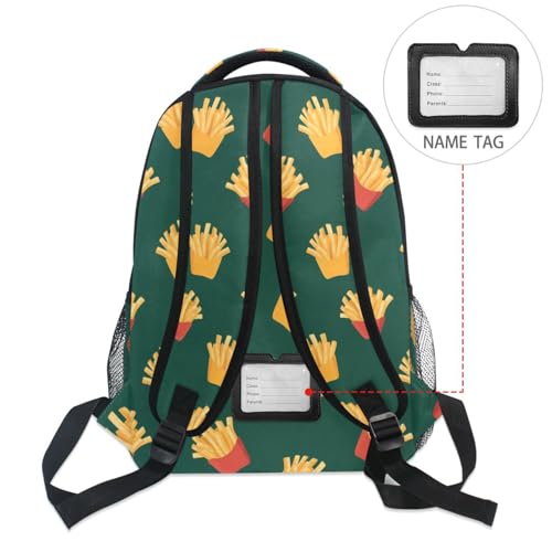 French Fries Green Cartoon Backpack for School Boys Girls Adults Kids Bookbag Laptop Bag 15L 7