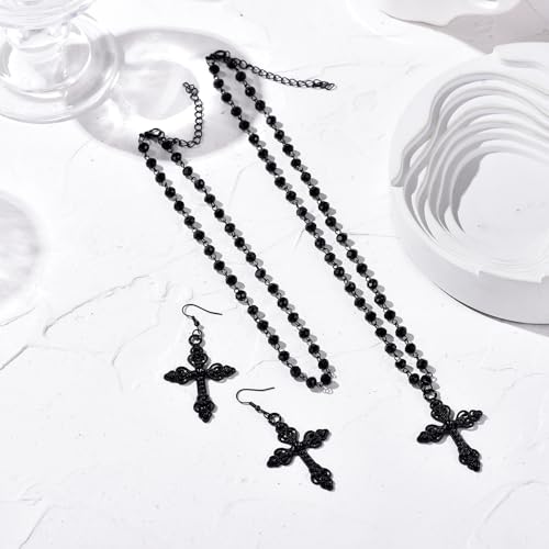 Gothic Cross Necklace, Earrings, Moon Earrings, Black Cross Pendant Choker, Crystal Chain Halloween Jewelry Set for Woman 5